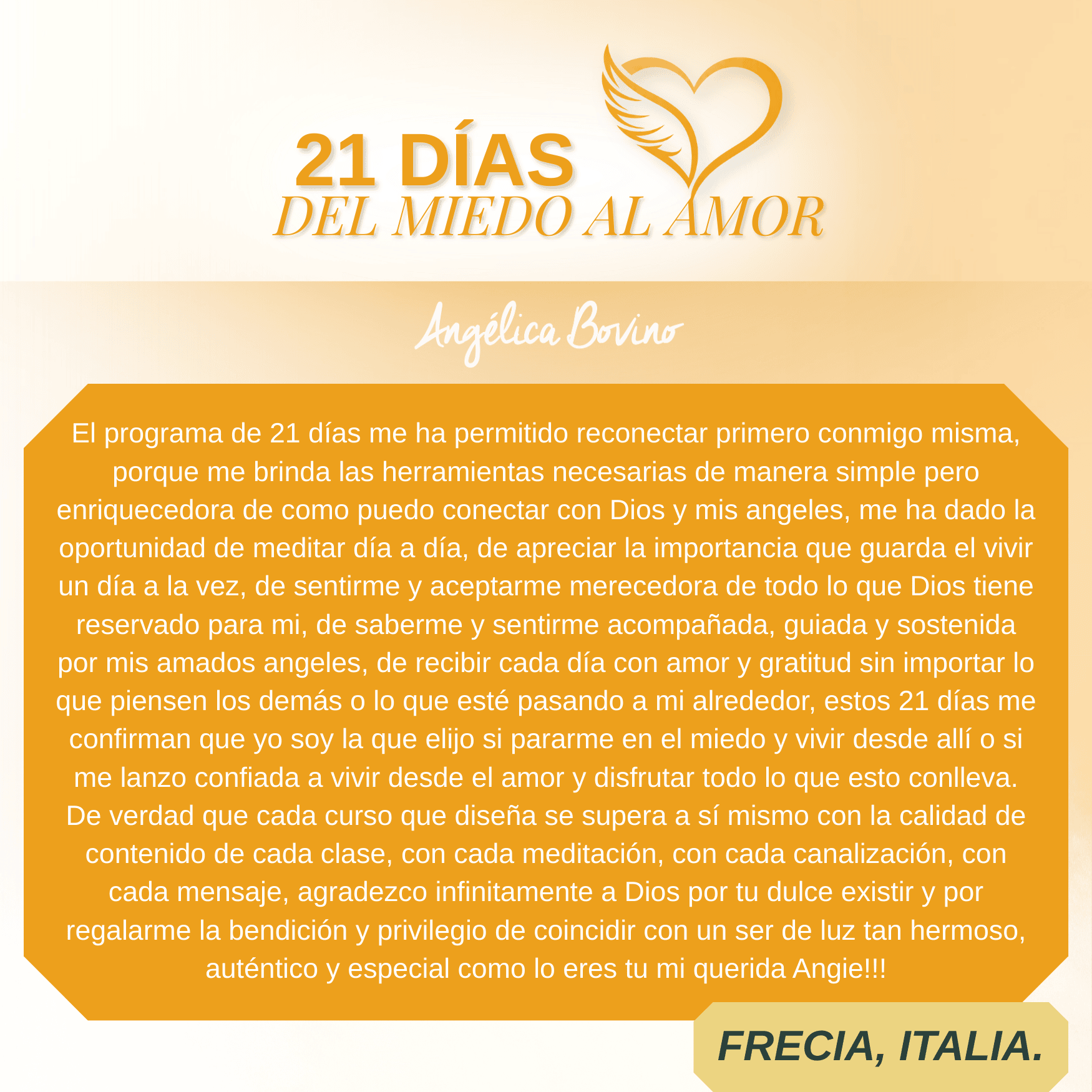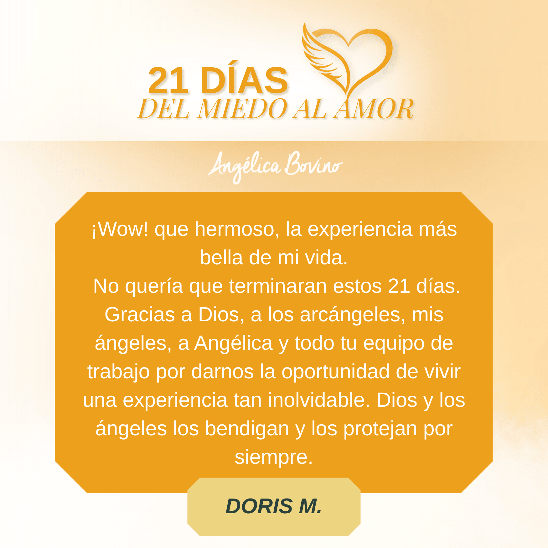 Este taller me transformó por completo, me ayudó a entender muchas cosas, me hizo ver los atributos femeninos que hay en mí y los conceptos erróneos que yo venía cargando desde mi niñez. Con la ayuda de Angélica y el Arcángel Haniel, pude sanar mi feminidad, logré renconciliarme con mi linaje femenino y a entender muchas cosas. Hoy me paro en mi lado femenino desde un mejor lugar.